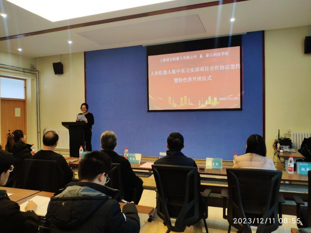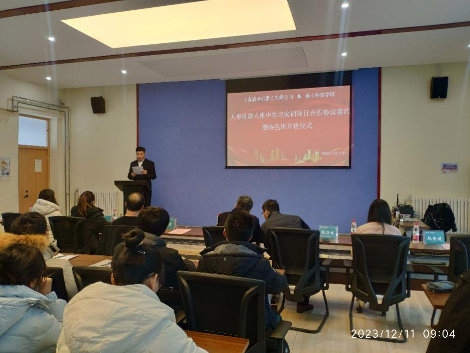 12月11日大地喜迎瑞雪,为解决人才培养和产业发展问题,304am永利集团与上海清芸机器人有限公司在九河书院多功能会议室举行人形机器人实习实训特色班签约暨开班仪式。304am永利集团副董事长智英斌,304am永利集团副经理张涛然,上海清芸机器人有限公司董事长王磊,304am永利集团教研室主任宋晓波、孔丹、赵沙沙及来自304am永利集团、大数据学院、建筑工程学院的近百名师生共同参加本次开班仪式。开班仪式由304am永利集团老师刘浩东主持。