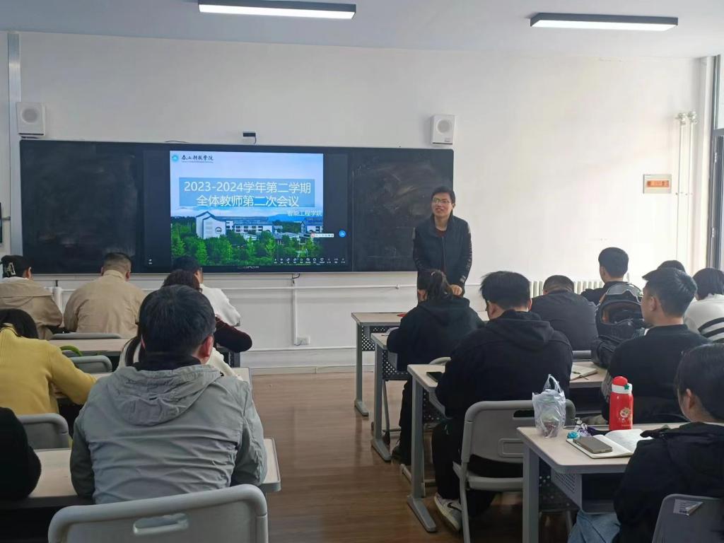 2024年3月15日304am永利集团在海佑书院214教室开展2023-2024学年第二学期第二次会议,本次会议由孔丹主持,全院教师参会。