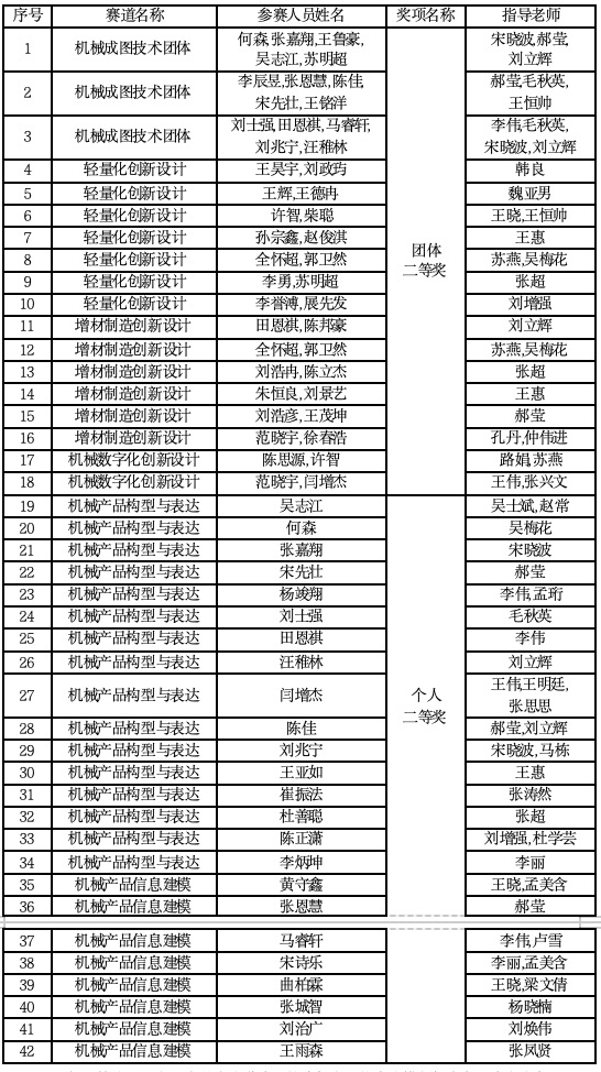 表2第十七届全国老员工先进成图技术与产品信息建模创新大赛山东省省赛