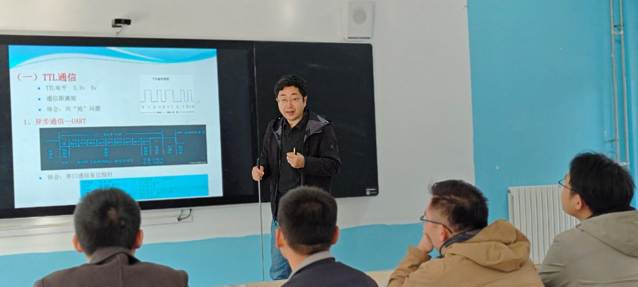 培训会上,李英建教授从ModBus通信的基本原理讲起,深入浅出地介绍了ModBus通信协议的构成、特点及其在实际应用中的重要性。在讲解过程中,李英建教授结合自己多年的设计应用经验,结合实际案例,详细讲解了ModBus通信在工业控制、物联网等领域的关键技术问题,并分享了诸多典型解决方法,使青年教师们对ModBus通信技术有了更加直观、深刻的理解。