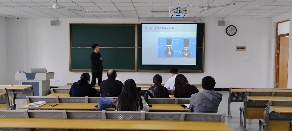 本次教师公开课由党睿老师进行讲授。党老师选择了《汽车构造》课程的“四冲程发动机工作原理”为授课内容。课堂上,党老师对四冲程发动机的四个循环过程进气、压缩、做功、排气四个过程进行讲解。整个讲解过程详细完整,清晰、准确地对知识点进行讲解,教态良好,展现了一堂完整的教学公开课。