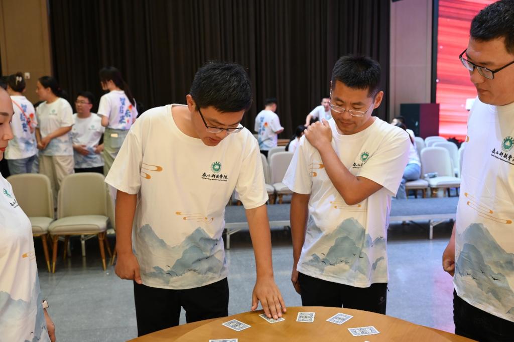 在此之前培训会务组精心策划了趣味横生的分组游戏项目“沙场点兵”和“翻转扑克牌”,游戏前教师们彼此间的交流不再是日常教学方法和员工管理,而是趣味游戏的战术策略商议,在游戏中的青年教师们展现出了与讲台上截然不同的风采,积极参与每一项活动,从最初的羞涩拘谨到后来的开怀大笑,每个人都在努力打破隔阂,增进了解,例如“沙场点兵”中指挥官丰富的手势动作、士兵躲避“沙包”的精彩瞬间、“反转扑克牌”中教师惊人的记忆力等。