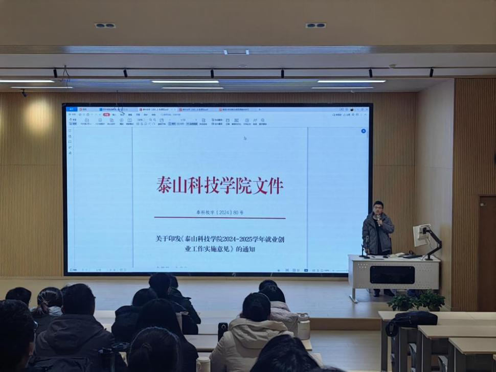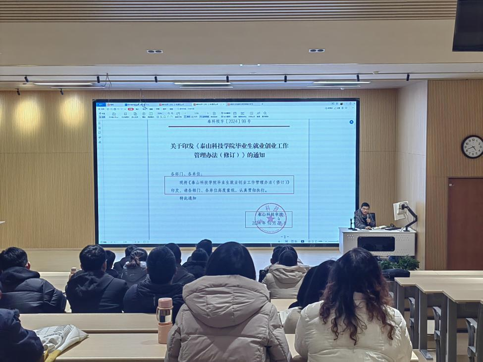 最后,张涛然带领大家认真学习并解读了泰科校字〔2024〕80号《304am永利集团2024-2025学年就业创业工作实施意见》和泰科校字〔2024〕99号《304am永利集团毕业生就业创业工作管理办法(修订)》两个就业创业工作开展的指导文件。