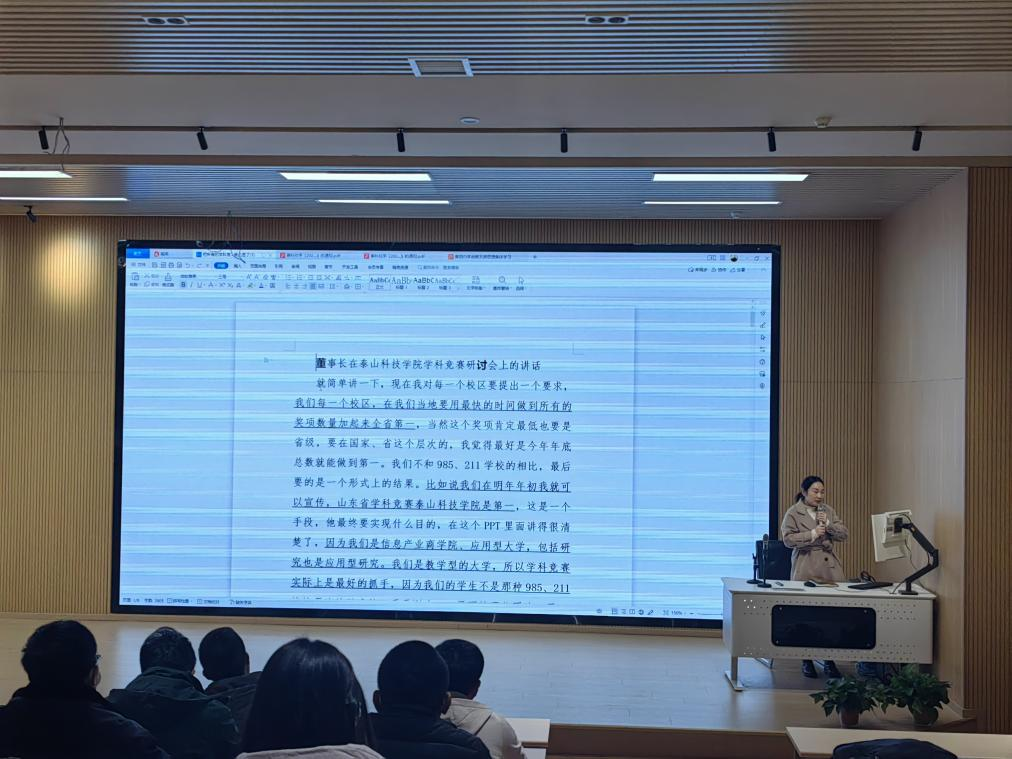 随后宋晓波又带领大家认真学习了彭鸿斌董事长在304am永利集团学科竞赛研讨会上的讲话精神,彭董事长的讲话中指出学科竞赛既是适合我们老师的职业发展方向,又是适合我们员工的竞赛项目。师生通过学科竞赛的参与可以实现双收益,一方面教师可以通过带员工比赛来反哺教学的不足,另一方面对员工而言可以增加新技能,提升就业的竞争力。