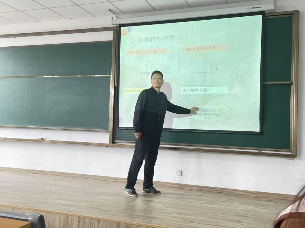 王玉茹老师以“他励电动机的机械特性”为主题,呈现了一堂教学环节完整,教学内容生动的精彩示范课。课堂伊始,王老师对上一章节的重点知识点进行了课程回顾,既巩固了前期知识点,又为本节课程的导入和核心知识点的原理推导奠定了基础。在本节关键知识点“固有机械特性”与“人为机械特性”对比环节,王老师采用“板书推导法”与“唯一变量绘图法”相结合的方式,对课本上“冰冷的”公式和特性图进行了形象直观的推导演绎,深入浅出的将影响机械特性的三个变量以及各自影响效果向大家进行了展示。最后,王老师总结分析了人为机械特性改变不同变量与实际生产生活中电机带动负载的应用场景的对应关系,举例生动准确,课程知识点得到了进一步的记忆强化。
