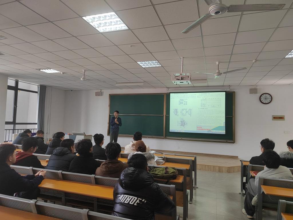 机械赛道宣讲会由毛秋英、刘立辉两位资深教师联袂主讲,并邀请了学校成图协会会长许智同学到场分享。毛秋英老师从赛事定位切入,强调该项赛事“以赛促学、以赛促创”的核心价值,通过历年获奖数据对比,展示了学校在机械类赛道的传统优势。刘立辉老师则聚焦备赛方法论,从三维建模规范、装配技巧到工程图输出标准层层递进,并现场展示了Solidworks高级功能模块的操作技巧。许智的登场将气氛推向高潮,这位曾获国赛二等奖的“技术达人”以自身经历破题:“备赛过程就是不断突破认知边界的过程”,他特别建议学弟学妹充分利用碎片时间,建立“案例库+错题集”的双轨学习模式。